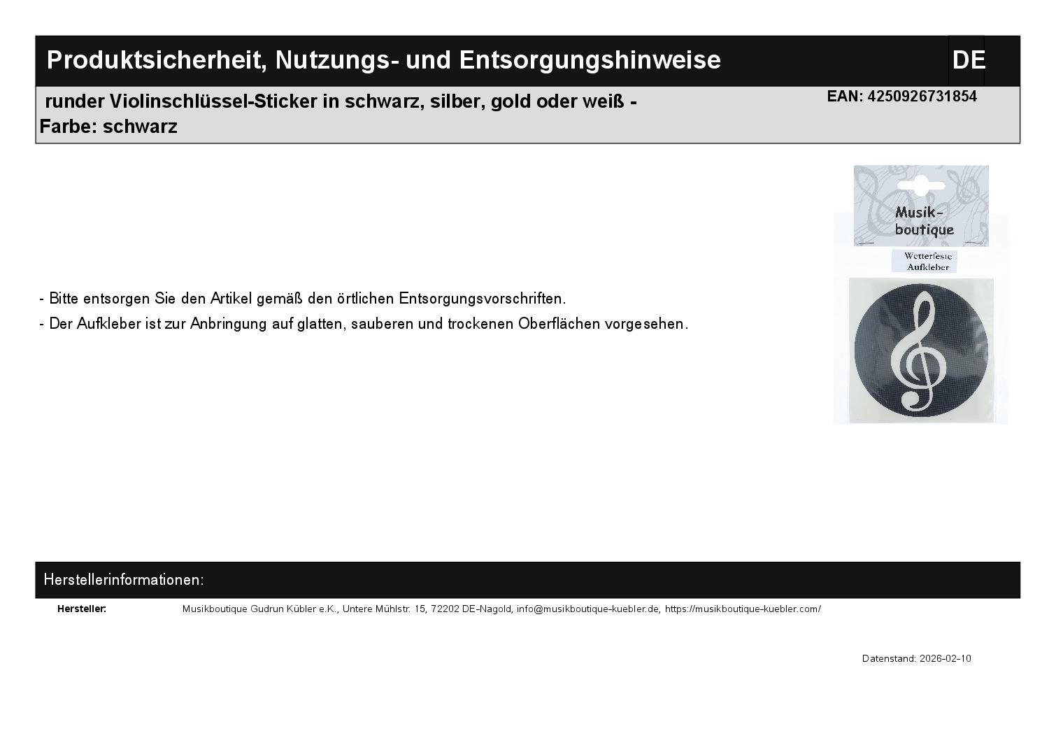 | Titel | runder Violinschlüssel-Sticker in schwarz, silber, gold oder weiß - Farbe: schwarz |