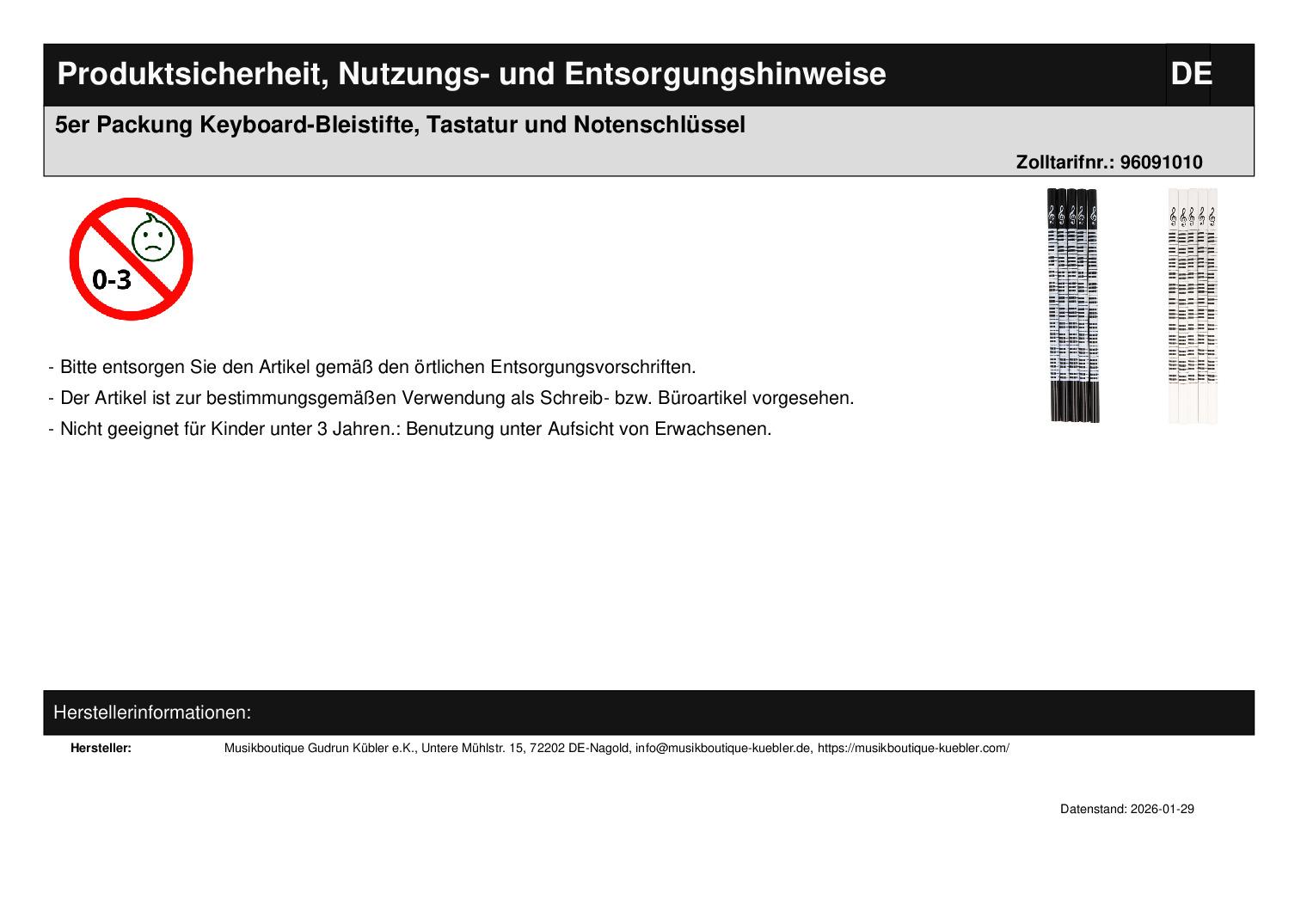 | Titel | 5er Packung Keyboard-Bleistifte, Tastatur und Notenschlüssel |