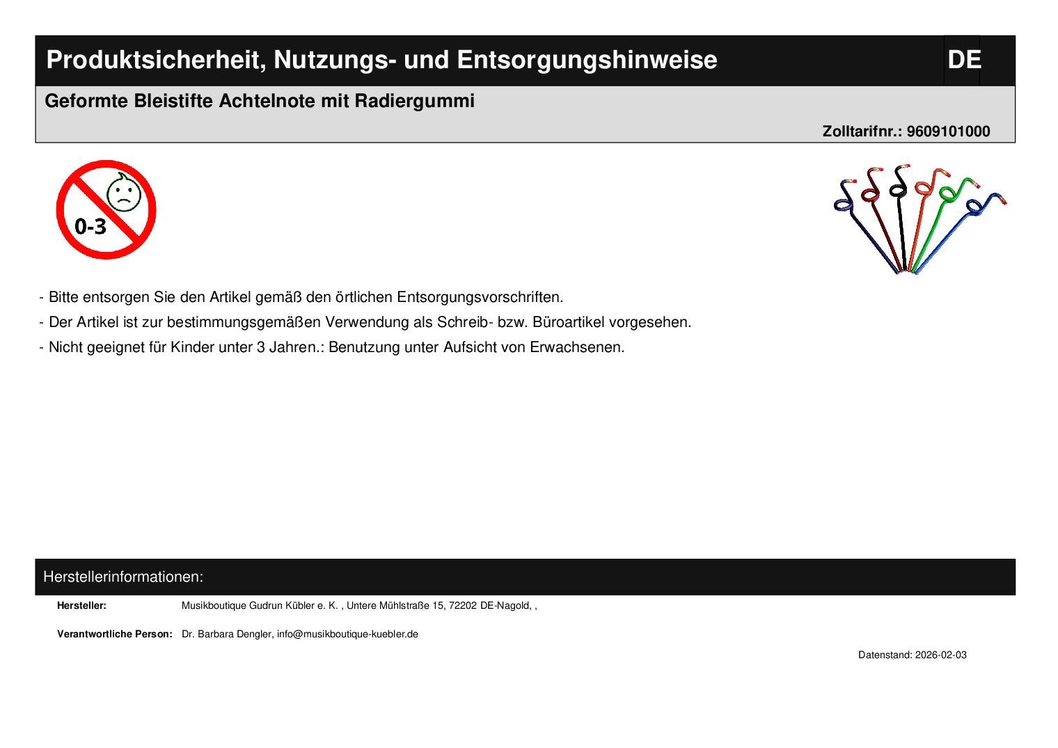| Titel | Geformte Bleistifte Achtelnote mit Radiergummi |