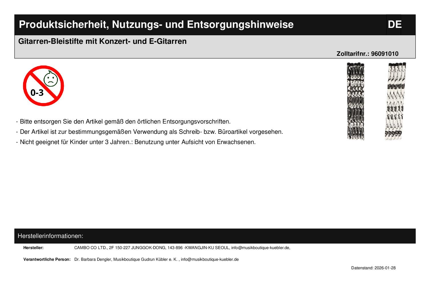 | Titel | Gitarren-Bleistifte mit Konzert- und E-Gitarren |