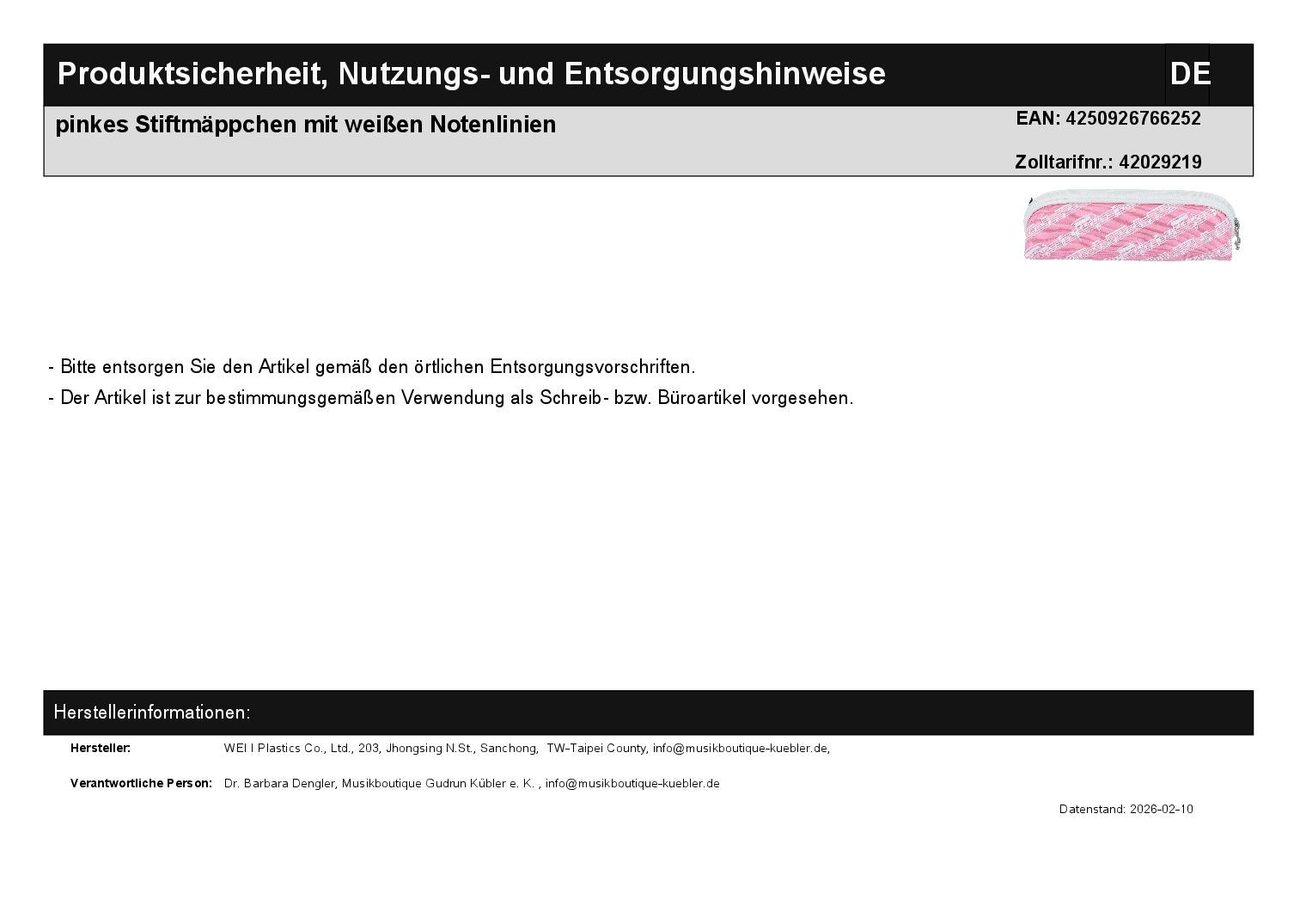 | Titel | pinkes Stiftmäppchen mit weißen Notenlinien |