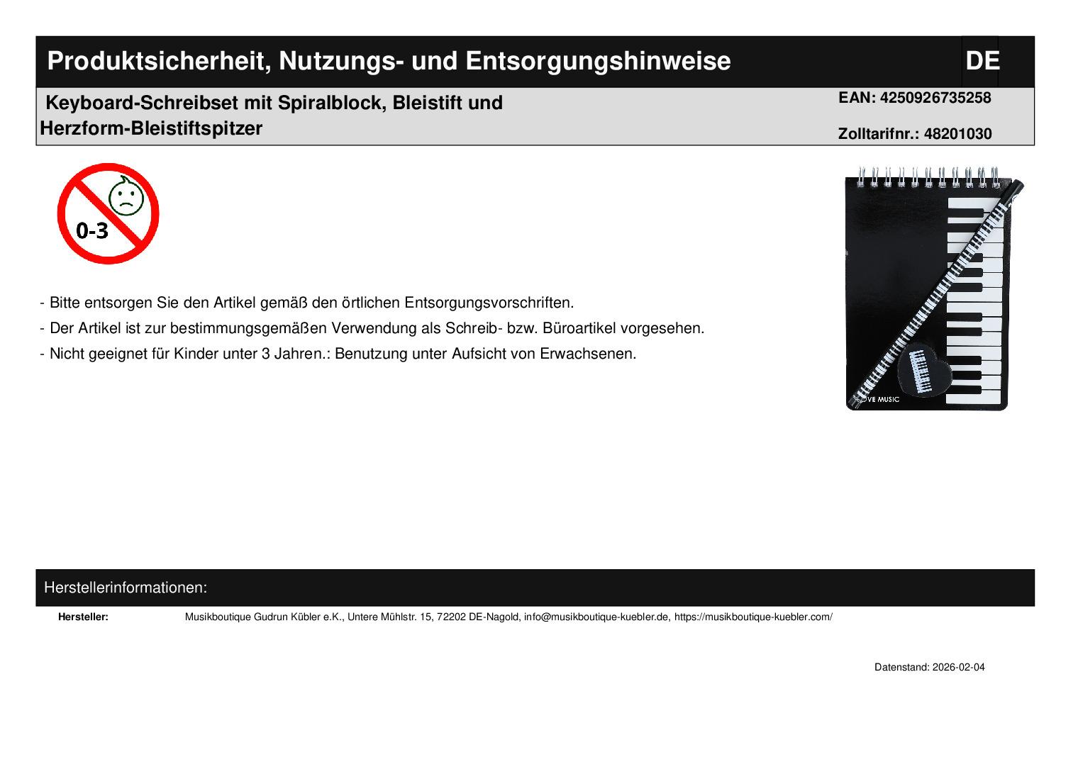 | Titel | Keyboard-Schreibset mit Spiralblock, Bleistift und Herzform-Bleistiftspitzer |
