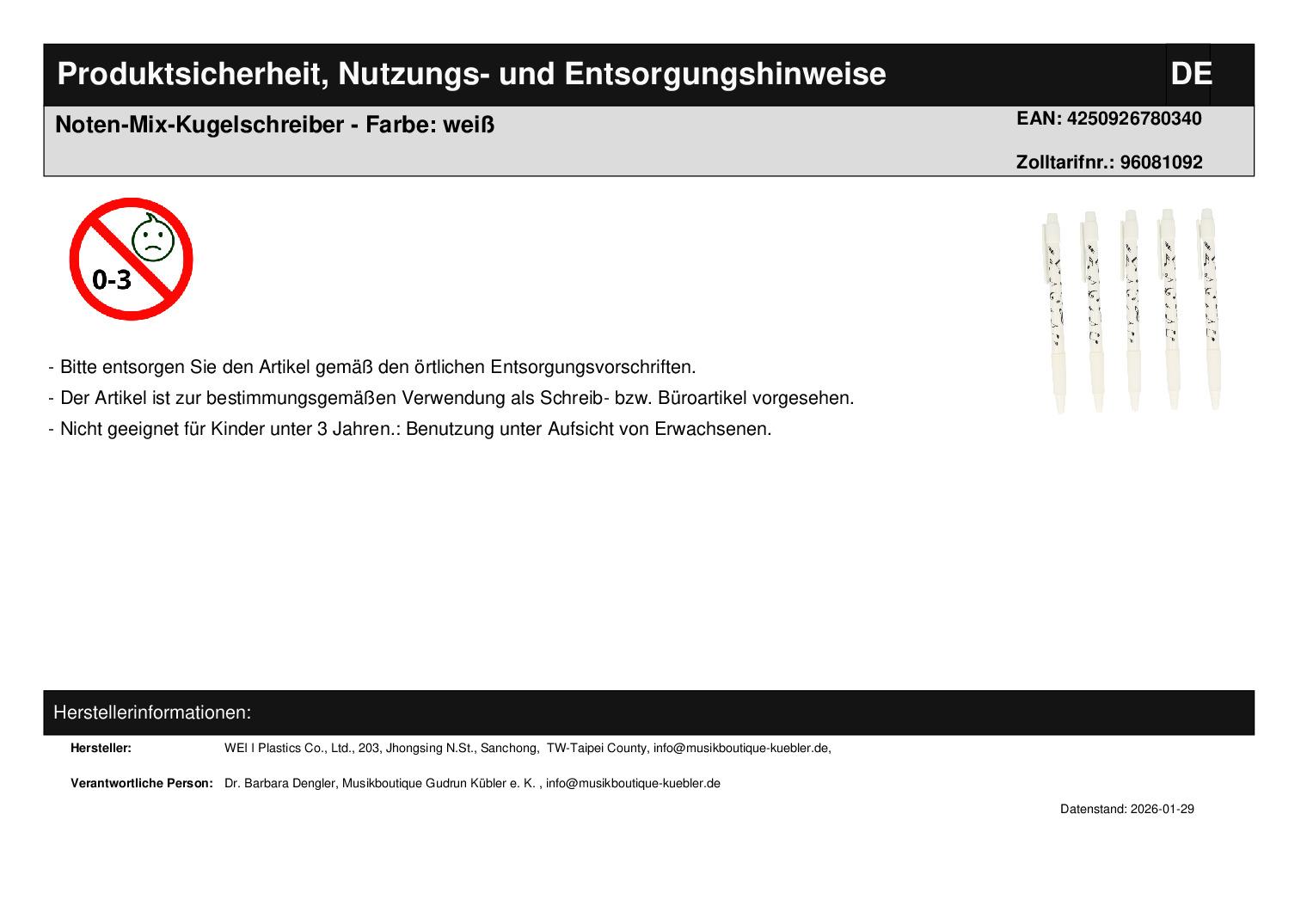 | Titel | Noten-Mix-Kugelschreiber - Farbe: weiß |