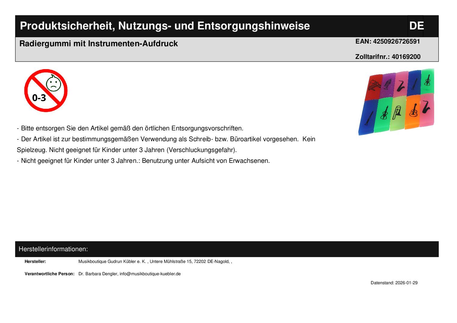 | Titel | Radiergummi mit Instrumenten-Aufdruck |