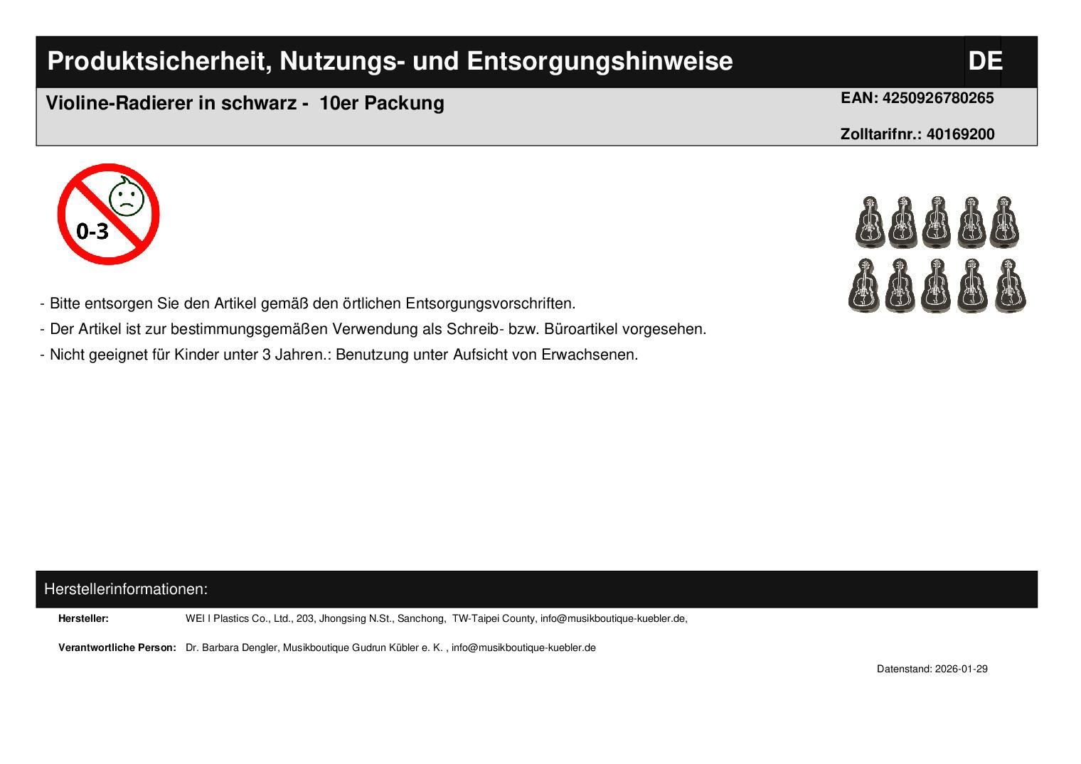 | Titel | Violine-Radierer in schwarz - 10er Packung |