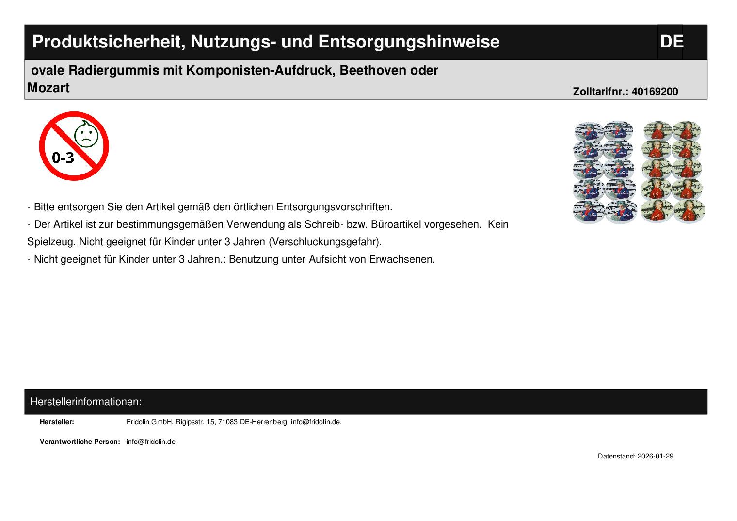| Titel | ovale Radiergummis mit Komponisten-Aufdruck, Beethoven oder Mozart |