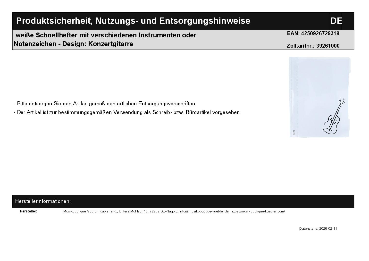 | Titel | weiße Schnellhefter mit verschiedenen Instrumenten oder Notenzeichen - Design: Konzertgitarre |
