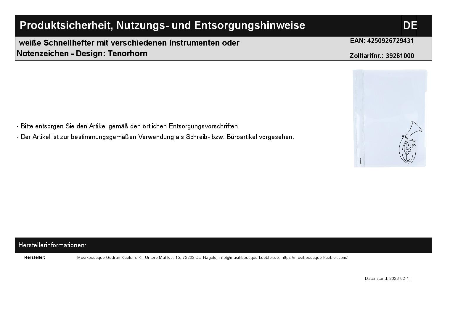 | Titel | weiße Schnellhefter mit verschiedenen Instrumenten oder Notenzeichen - Design: Tenorhorn |