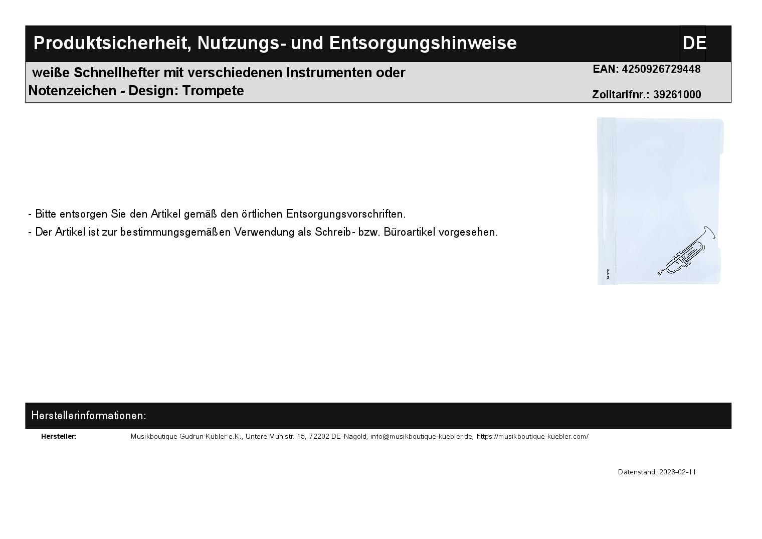 | Titel | weiße Schnellhefter mit verschiedenen Instrumenten oder Notenzeichen - Design: Trompete |