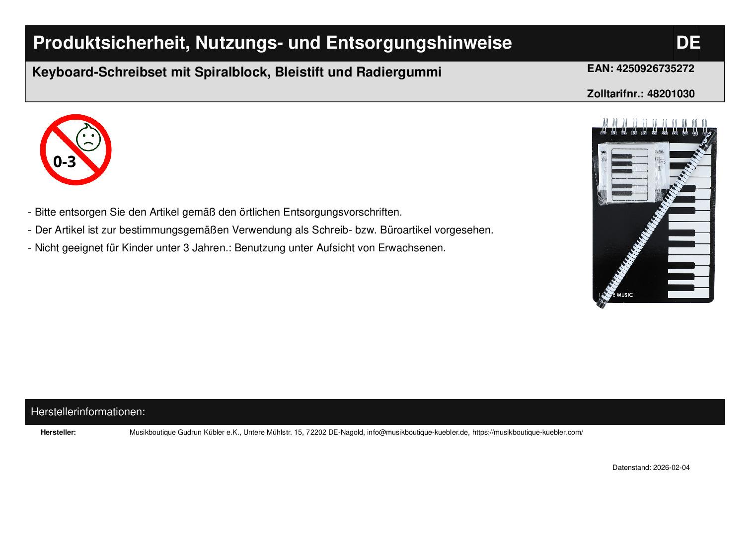 | Titel | Keyboard-Schreibset mit Spiralblock, Bleistift und Radiergummi |
