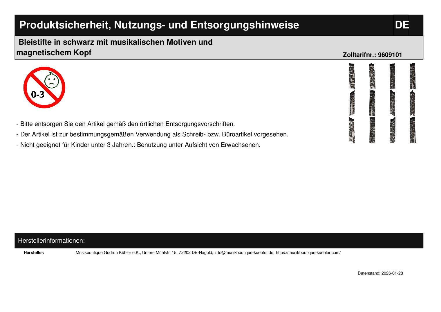 | Titel | Schreibset E-Gitarre mit schwarzen oder weißen Bleistiften - Ausführung: schwarz |