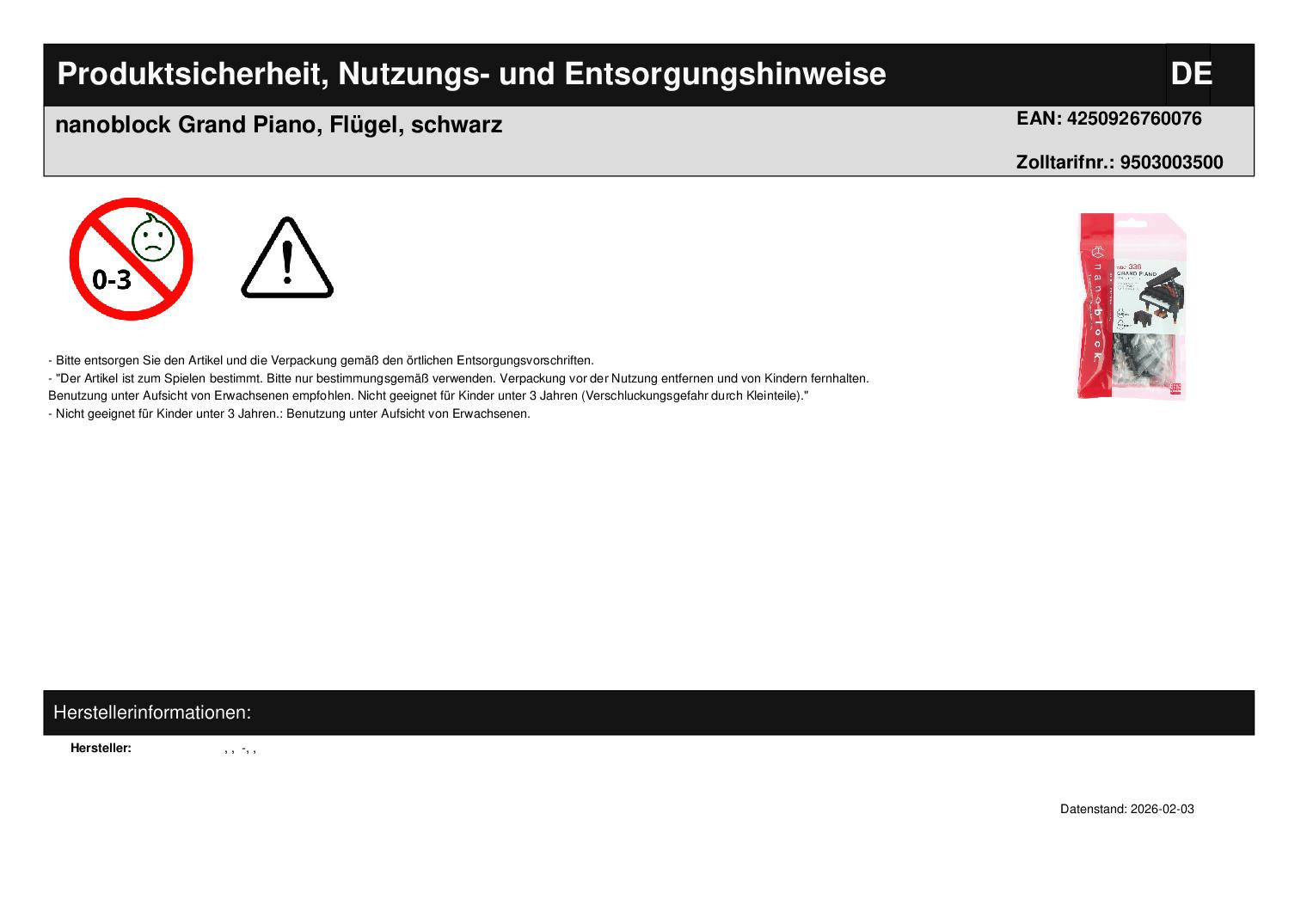 | Titel | nanoblock Grand Piano, Flügel, schwarz |