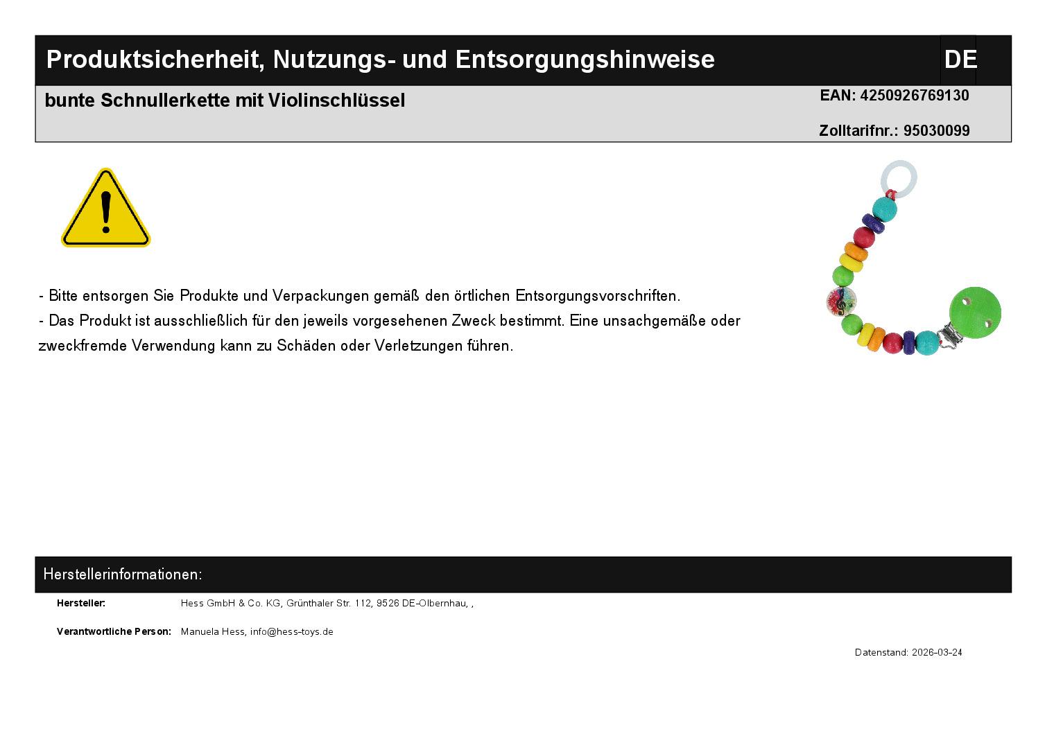 | Titel | bunte Schnullerkette mit Violinschlüssel |