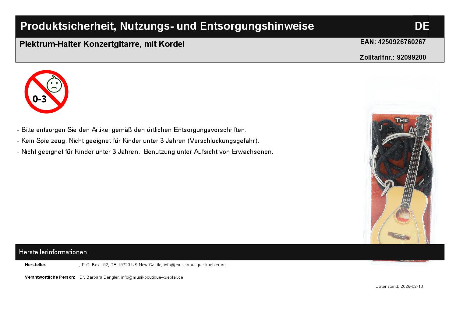| Titel | Plektrum-Halter Konzertgitarre, mit Kordel |