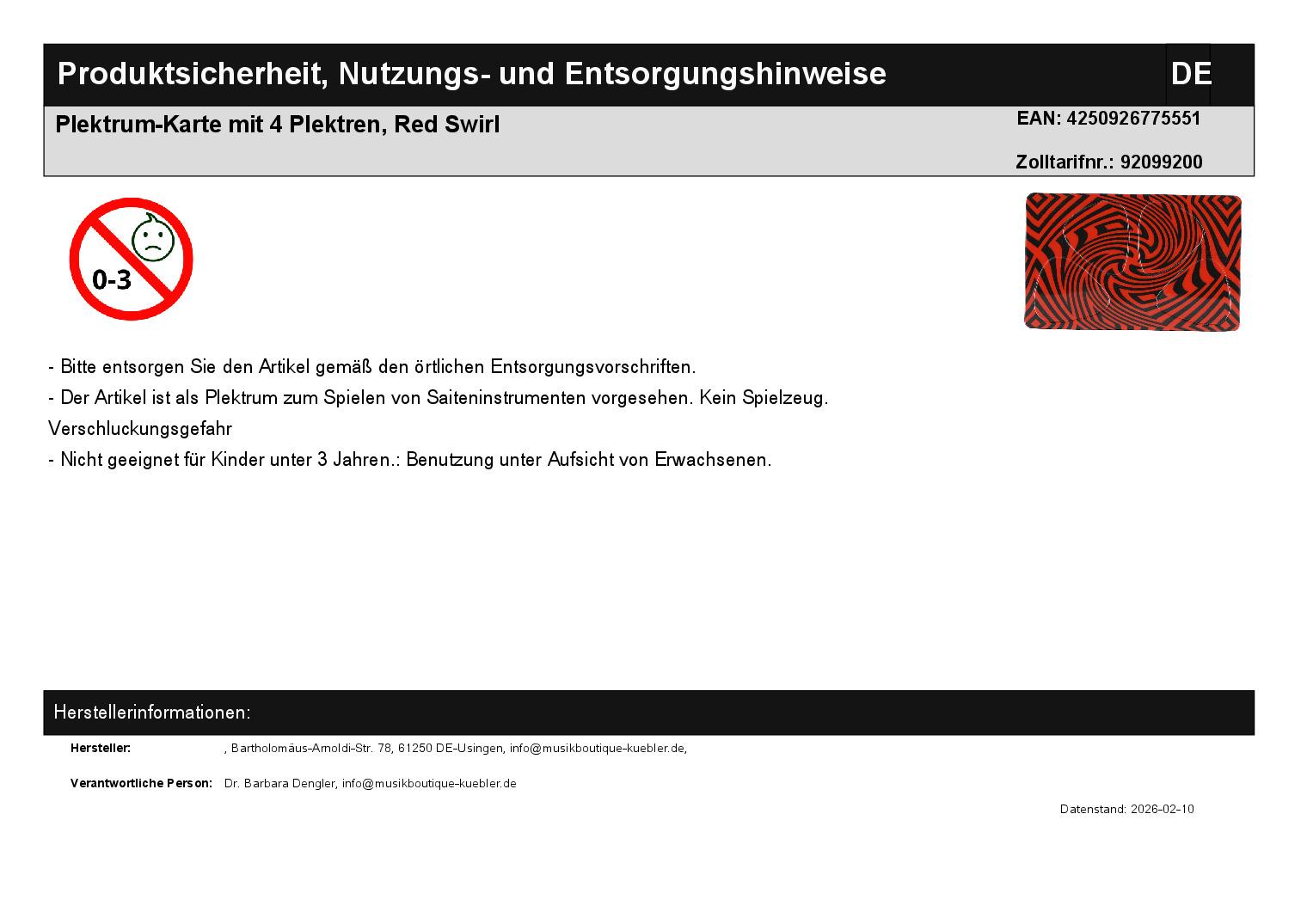 | Titel | Plektrum-Karte mit 4 Plektren, Red Swirl |