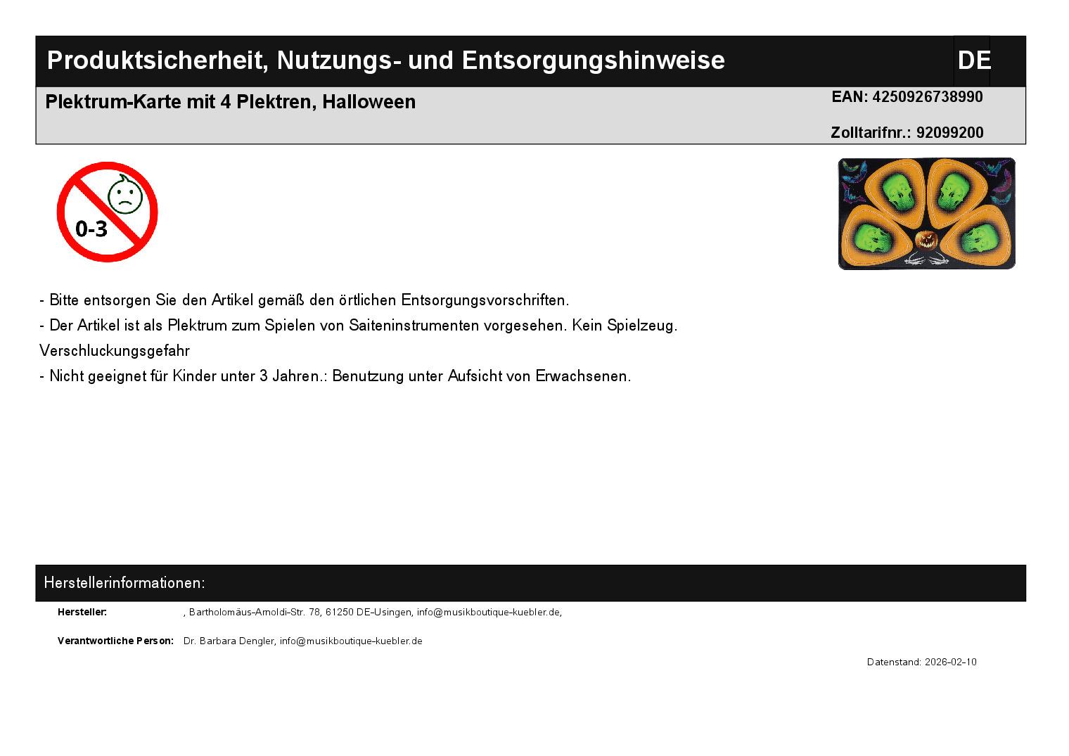 | Titel | Plektrum-Karte mit 4 Plektren, Halloween |