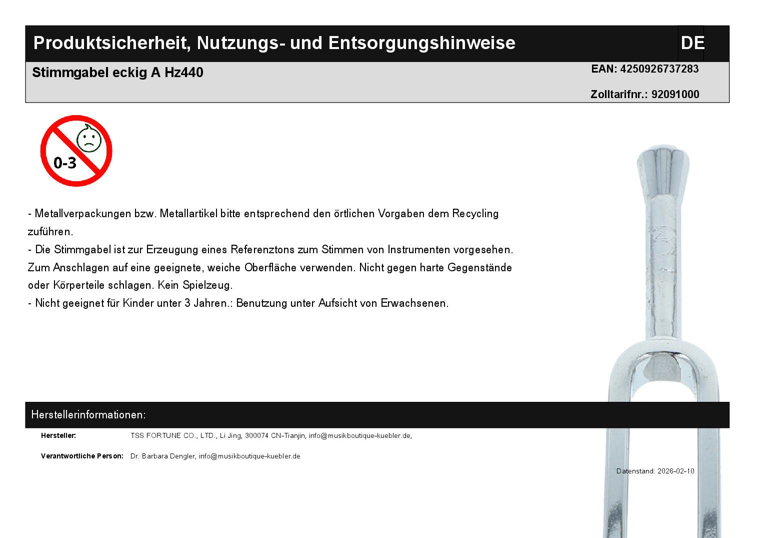 | Titel | Stimmgabel eckig A Hz440 |