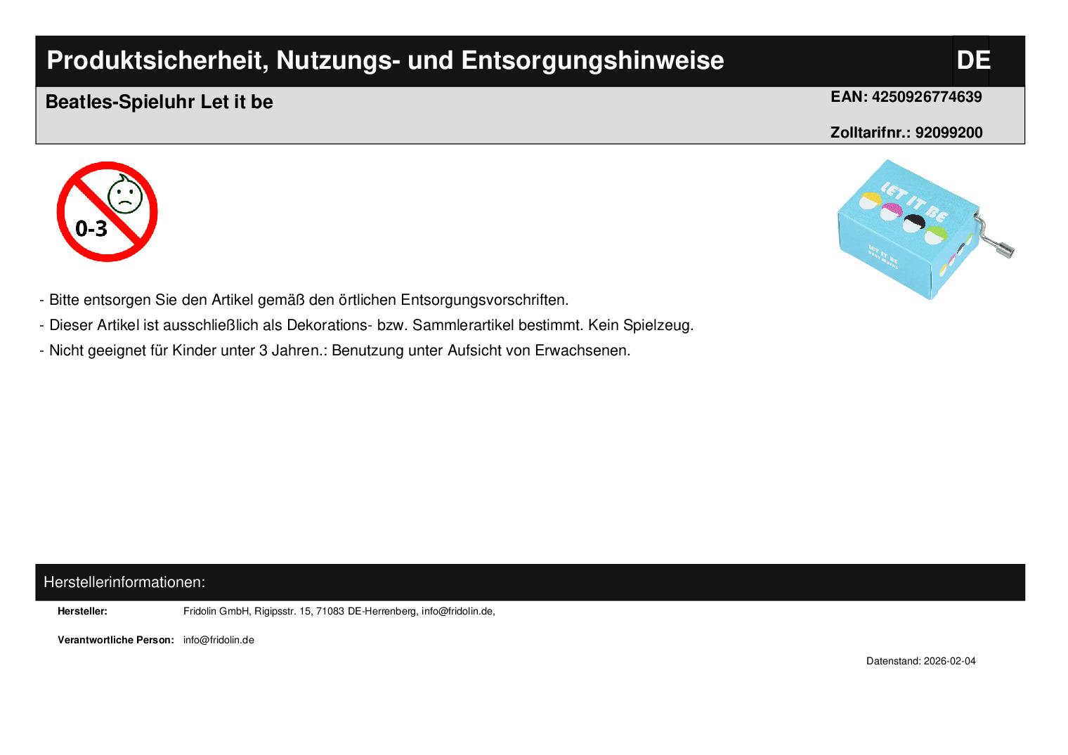 | Titel | Beatles-Spieluhr Let it be |