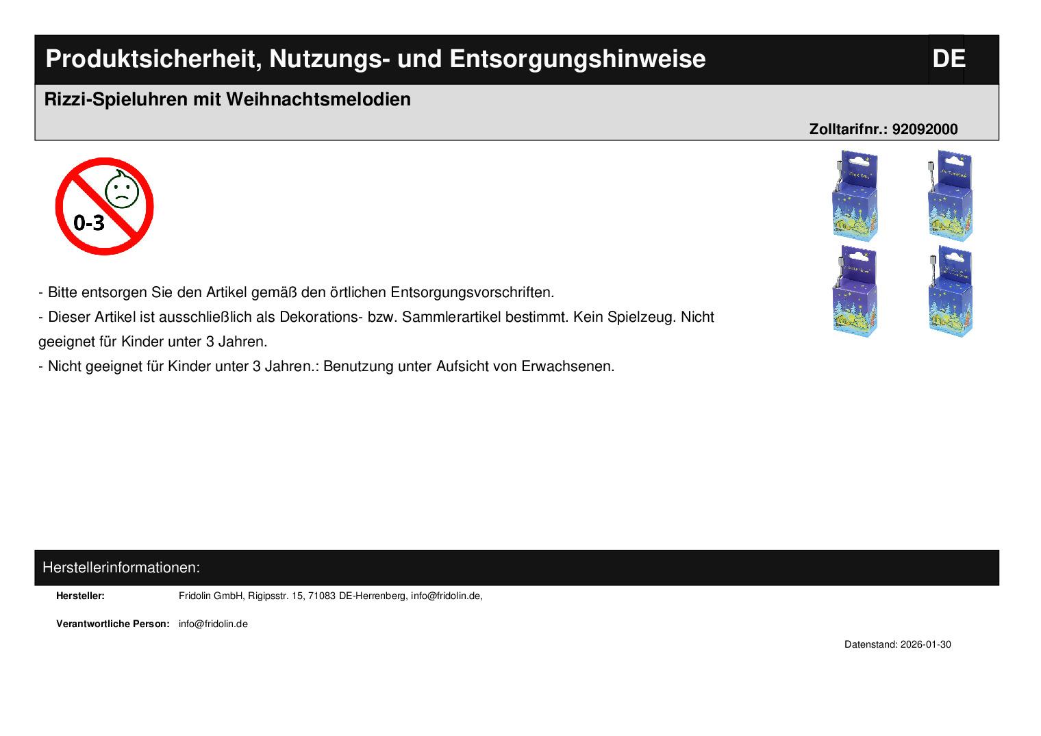 | Titel | Rizzi-Spieluhren mit Weihnachtsmelodien |