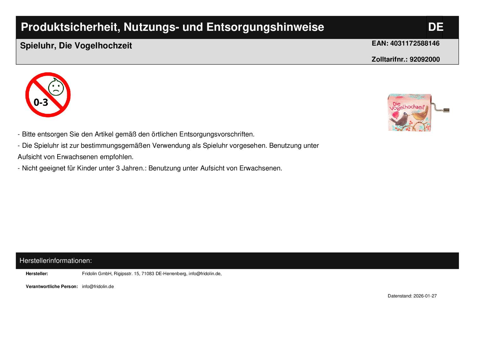 | Spielzeugaltersverbot | 0-3 |