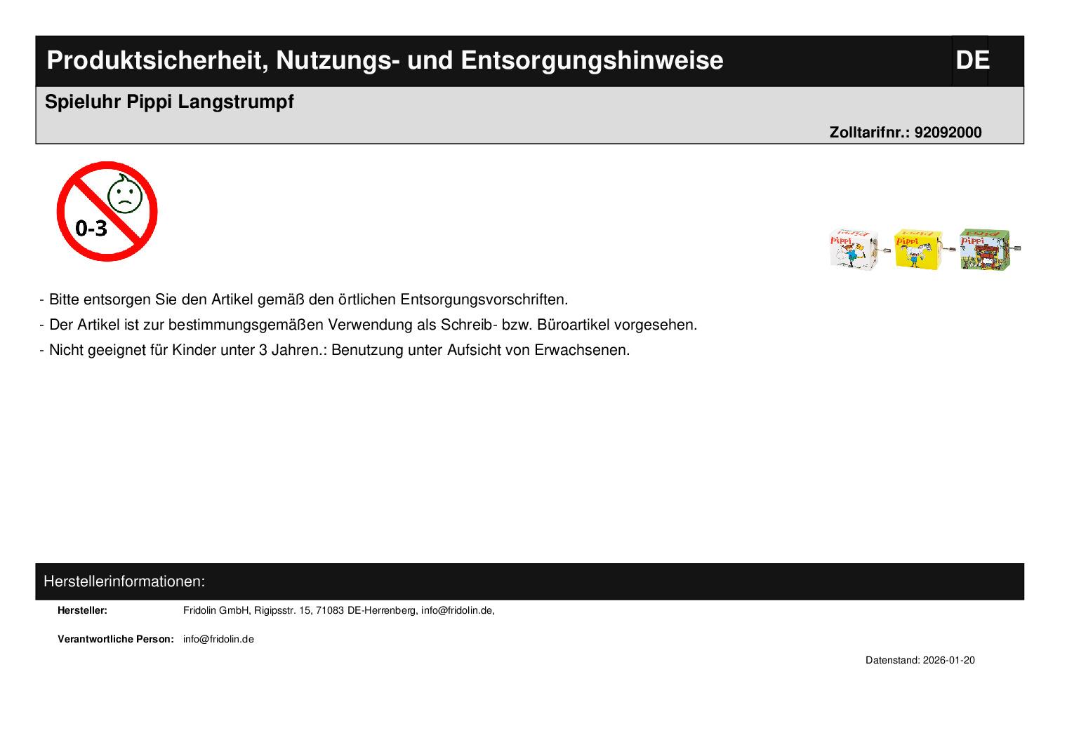 | Titel | Spieluhr Pippi Langstrumpf |