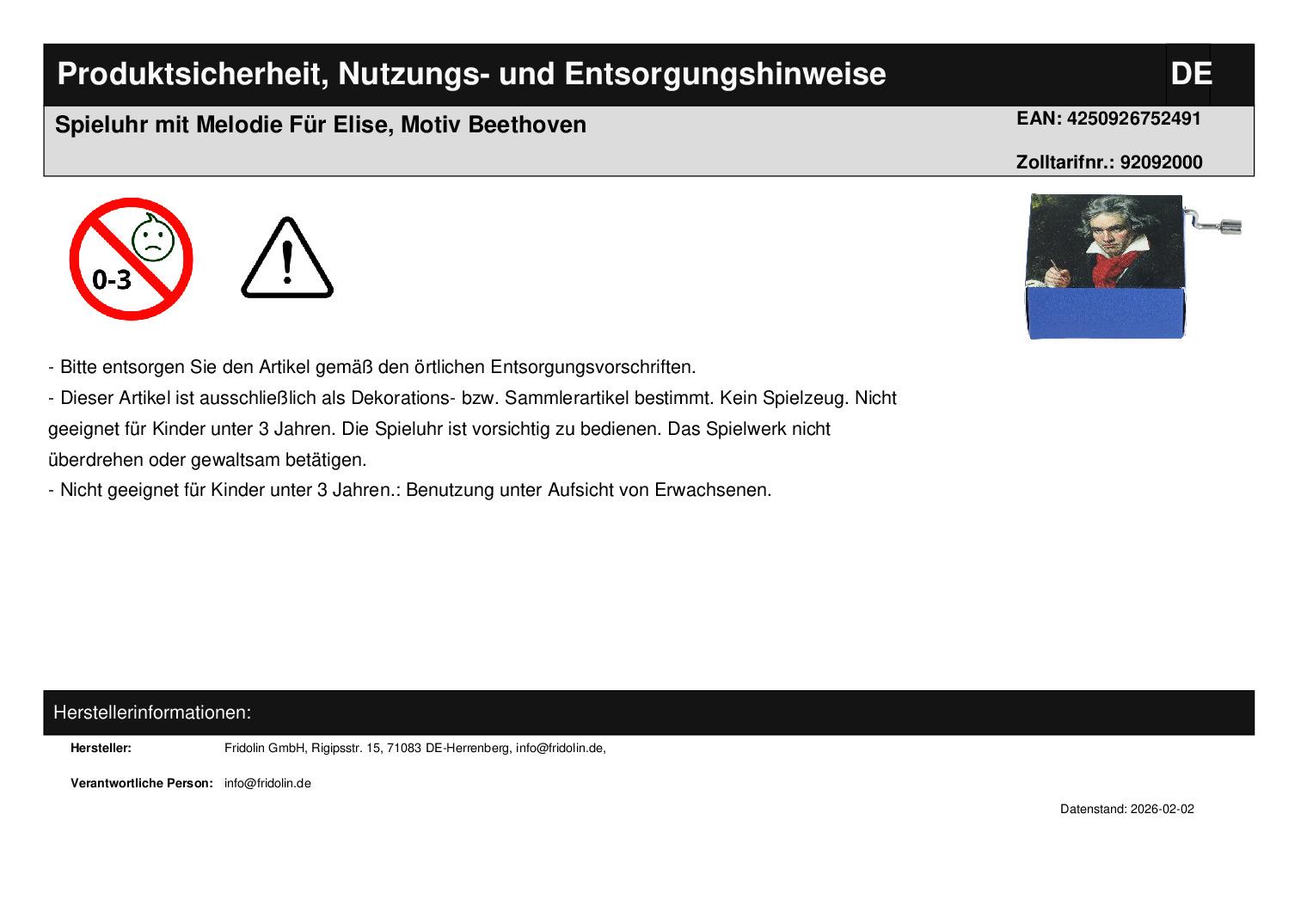 | Titel | Spieluhr mit Melodie Für Elise, Motiv Beethoven |