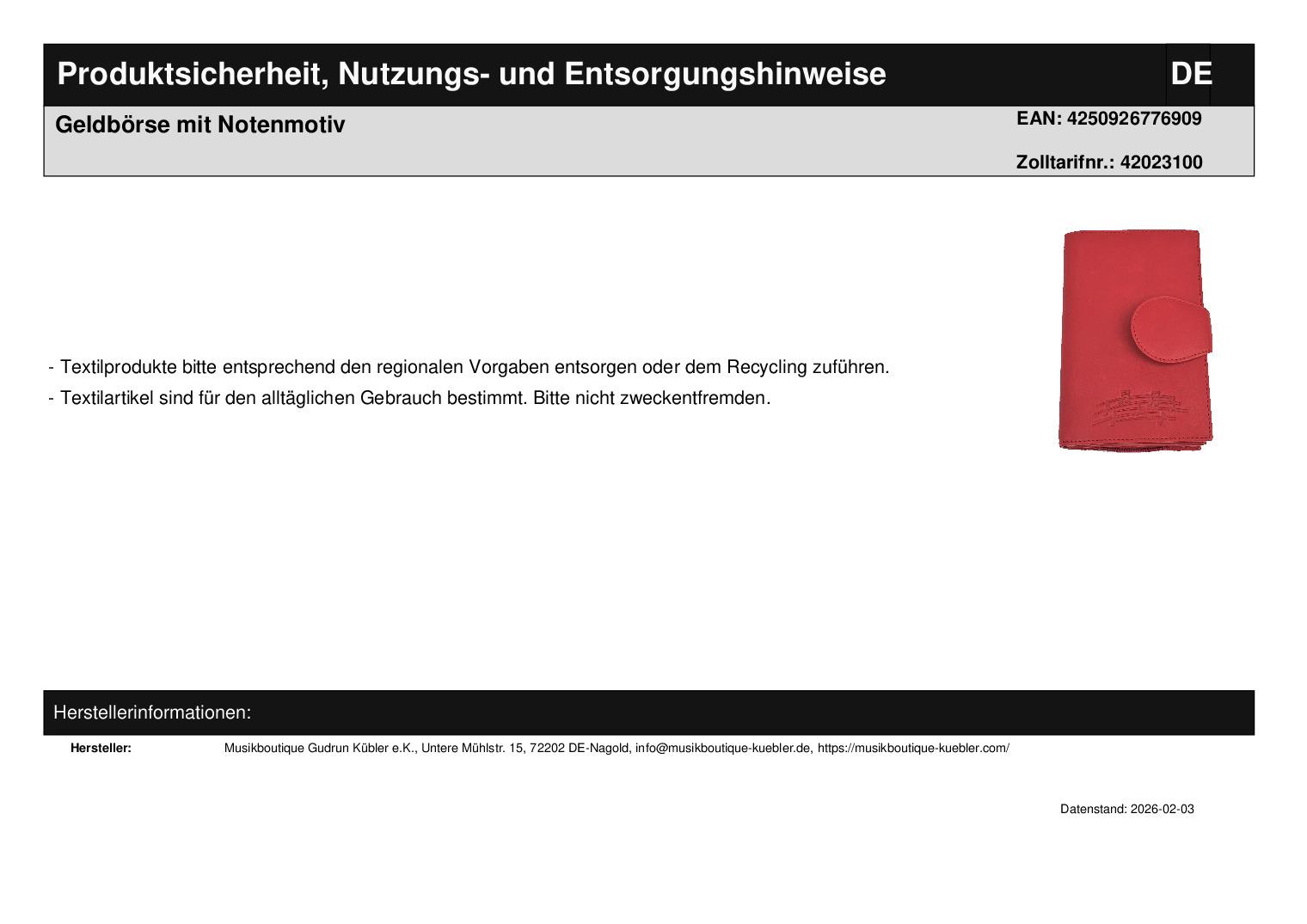 | Titel | Geldbörse mit Notenmotiv |
