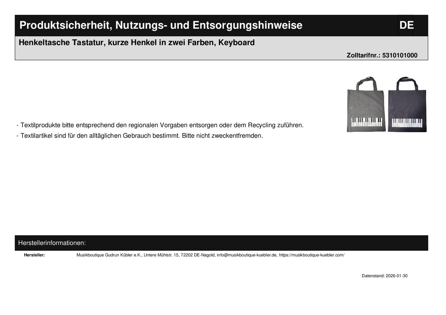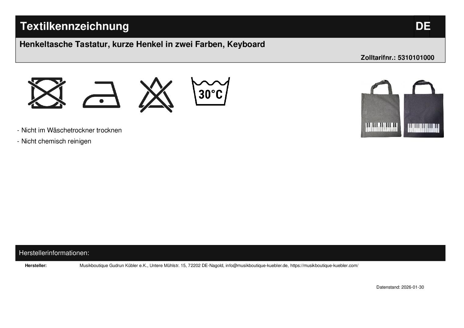 | Titel | Henkeltasche Tastatur, kurze Henkel in zwei Farben, Keyboard |