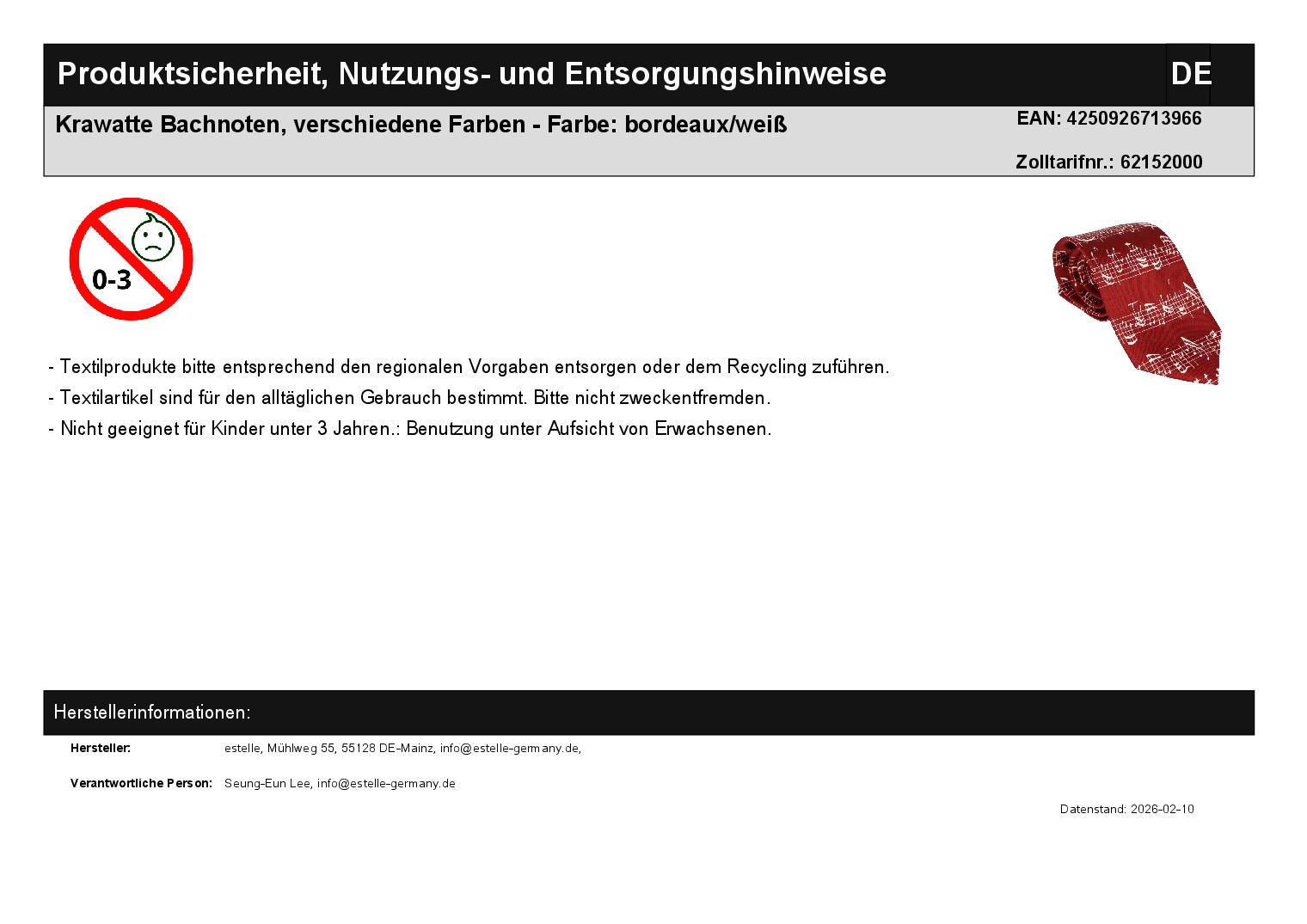 | Titel | Krawatte Bachnoten, verschiedene Farben - Farbe: bordeaux/weiß |