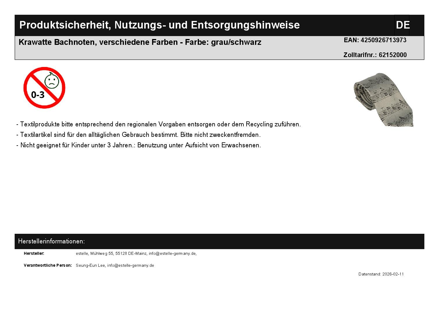 | Titel | Krawatte Bachnoten, verschiedene Farben |