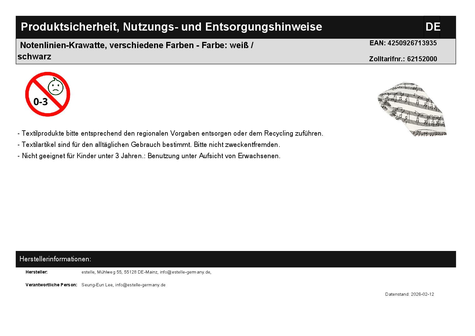 | Titel | Notenlinien-Krawatte, verschiedene Farben - Farbe: weiß / schwarz |