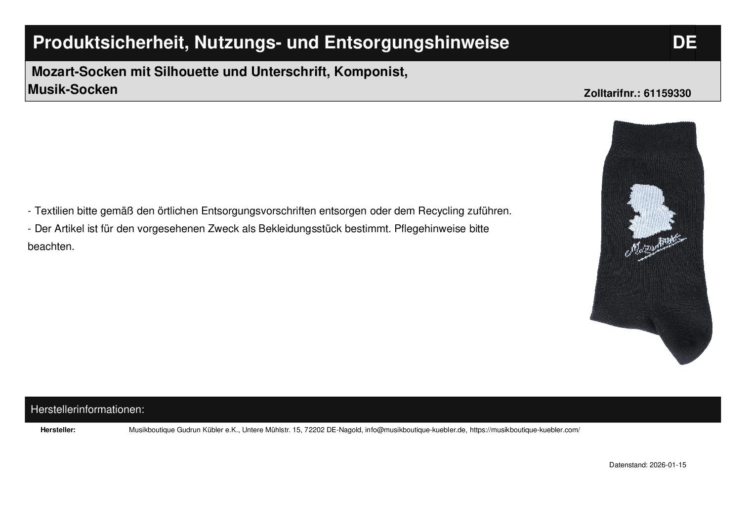 | Titel | Mozart-Socken mit Silhouette und Unterschrift, Komponist, Musik-Socken |