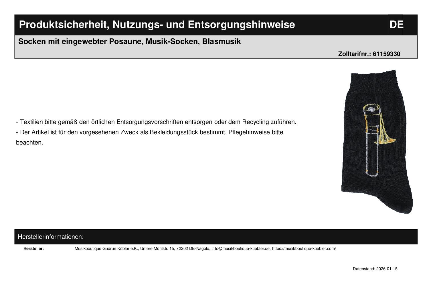 | Titel | Socken mit eingewebter Posaune, Musik-Socken, Blasmusik |