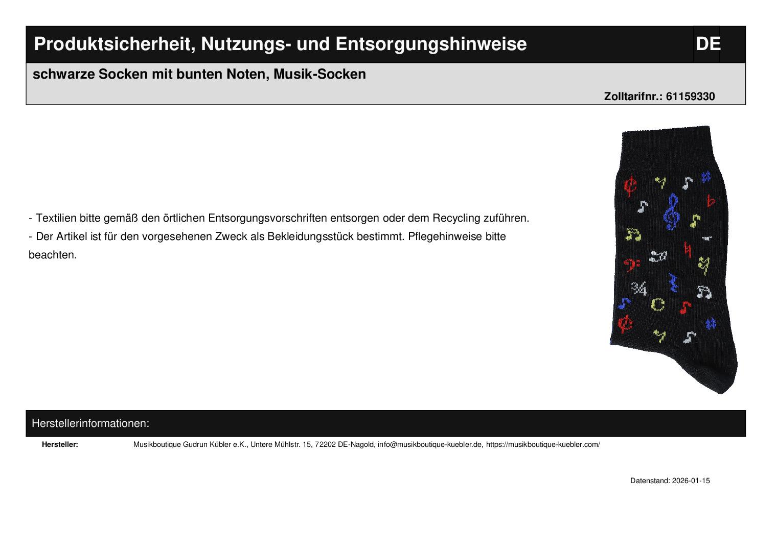 | Titel | schwarze Socken mit bunten Noten, Musik-Socken |