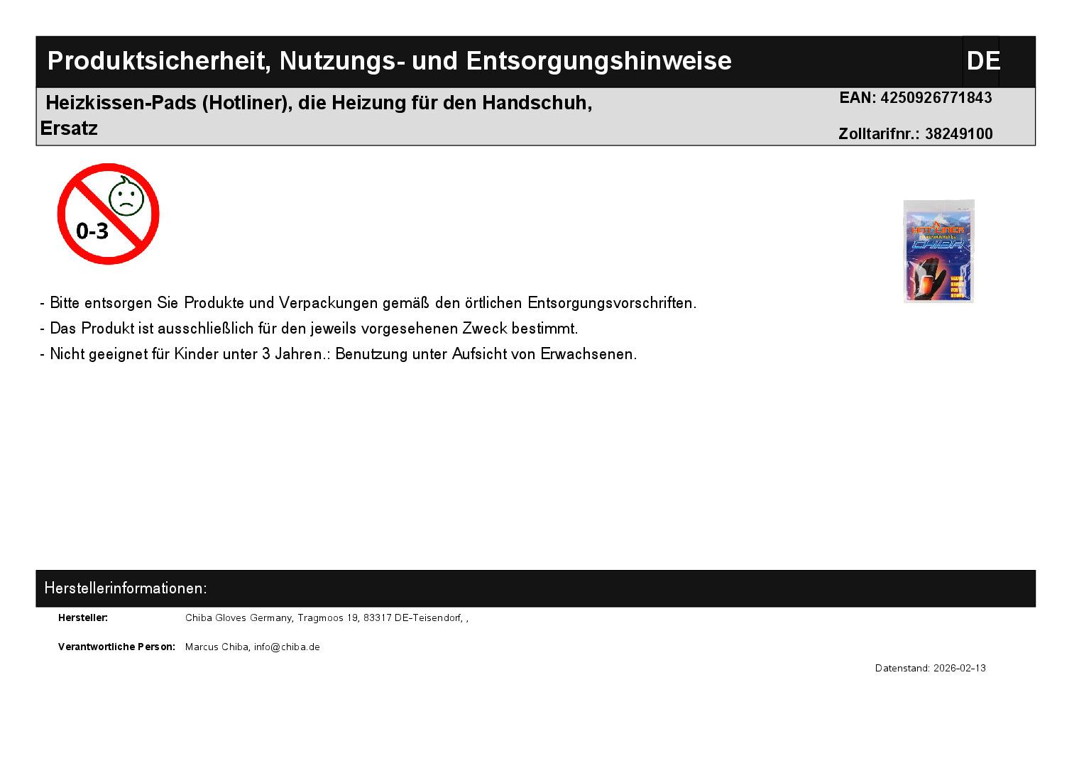 | Titel | Heizkissen-Pads (Hotliner), die Heizung für den Handschuh, Ersatz |