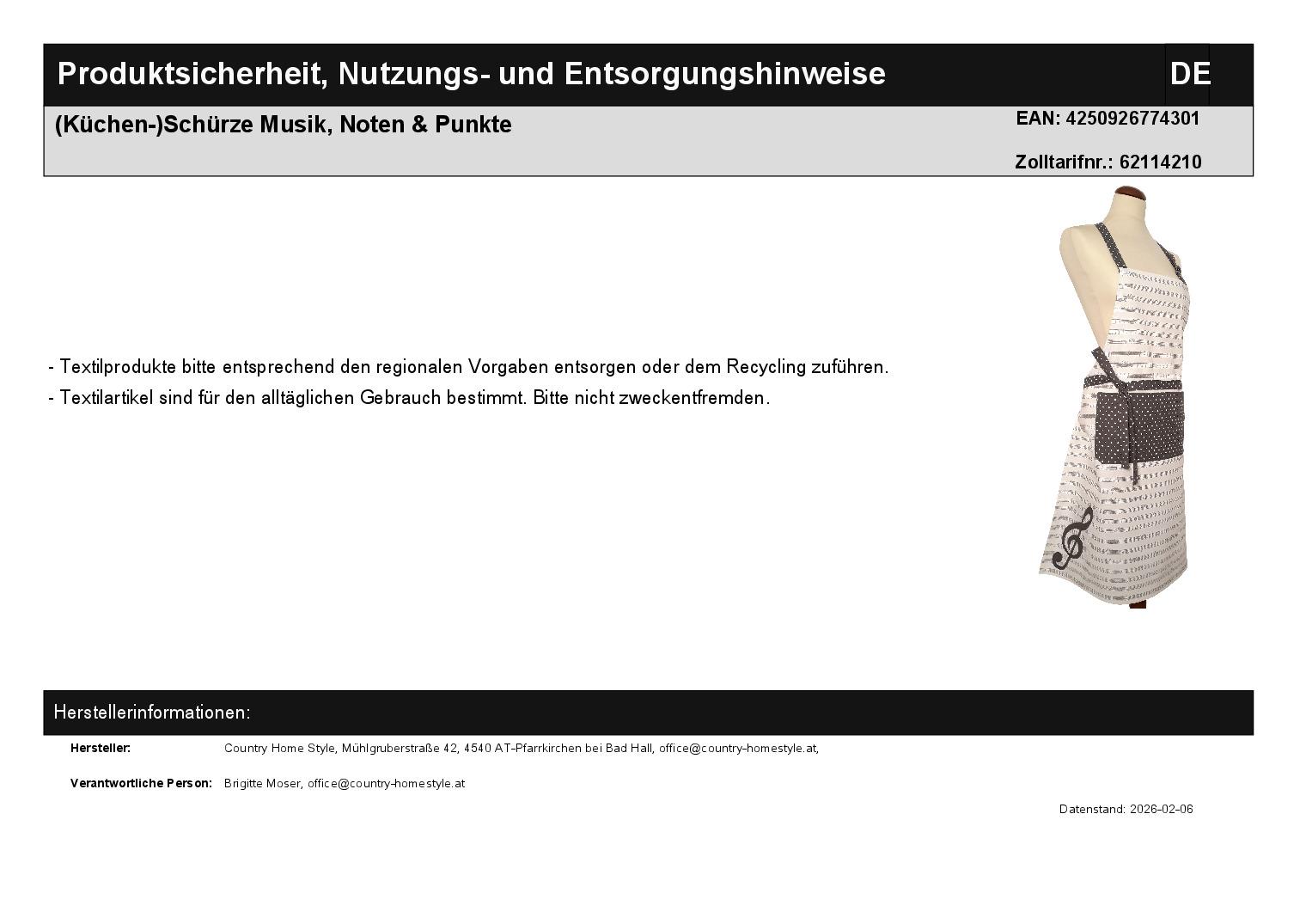 | Titel | (Küchen-)Schürze Musik, Noten & Punkte |