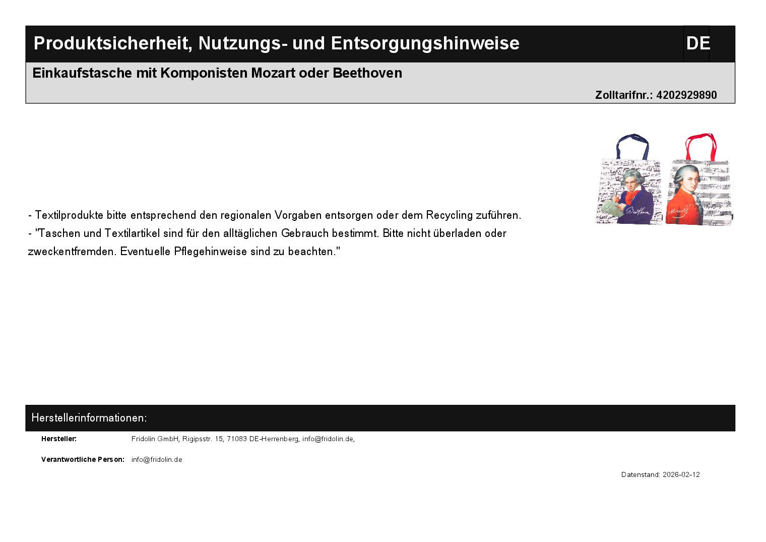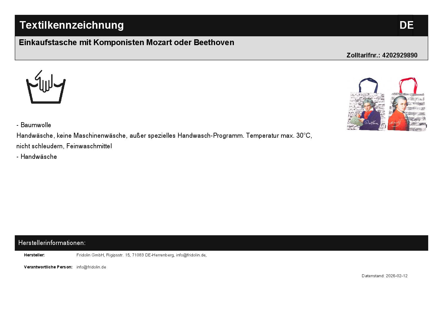 | Titel | Einkaufstasche mit Komponisten Mozart oder Beethoven |
