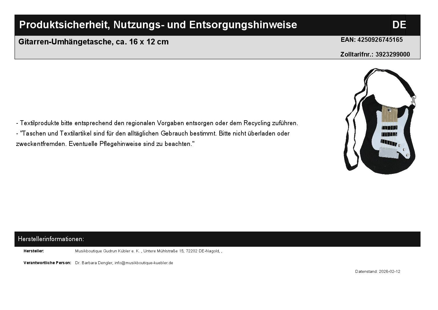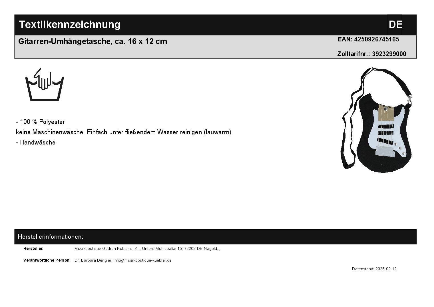 | Titel | Gitarren-Umhängetasche, ca. 16 x 12 cm |