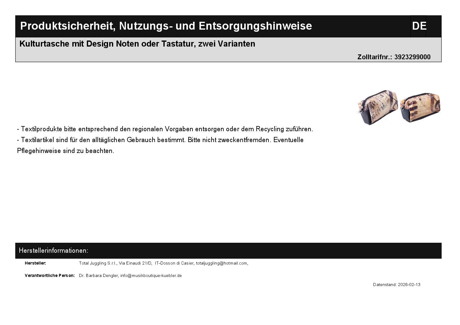 | Titel | Kulturtasche mit Design Noten oder Tastatur, zwei Varianten |