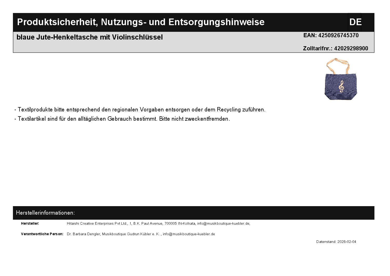 | Titel | blaue Jute-Henkeltasche mit Violinschlüssel |