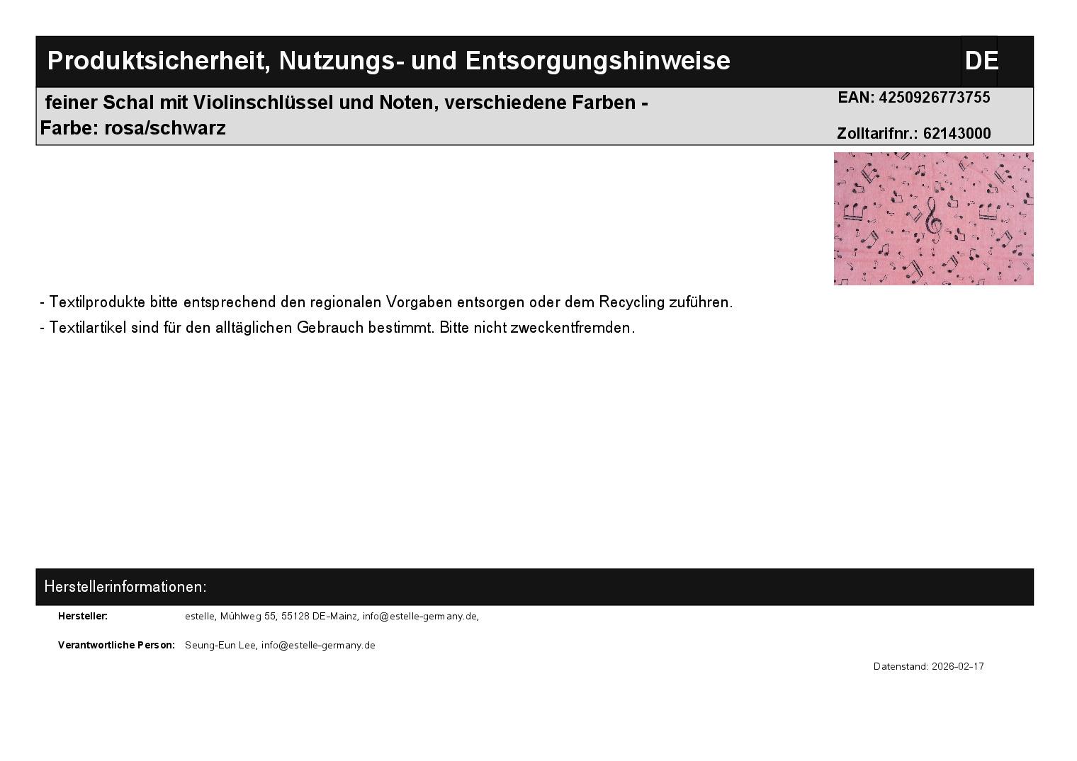 | Titel | feiner Schal mit Violinschlüssel und Noten, verschiedene Farben - Farbe: rosa/schwarz |